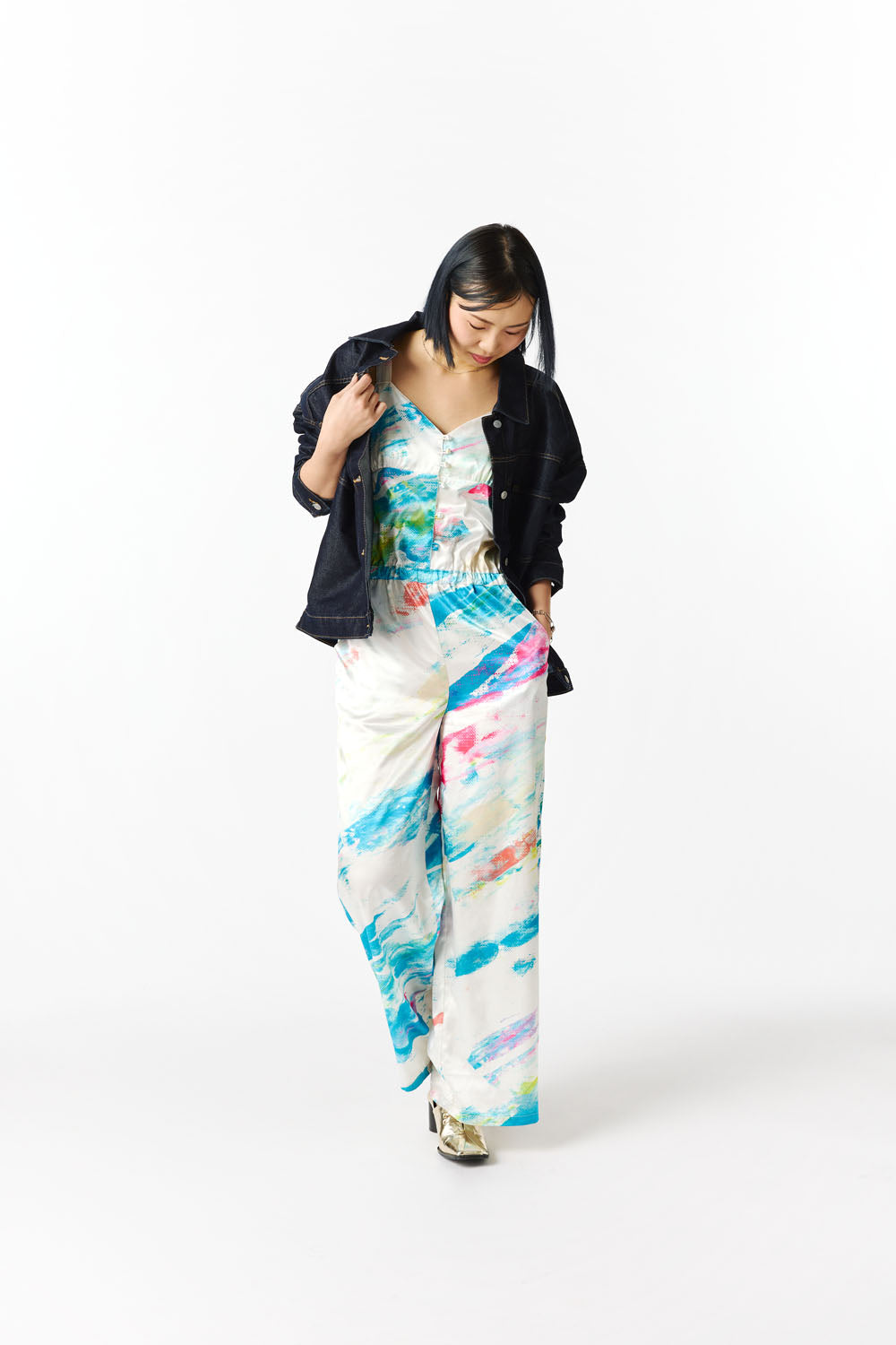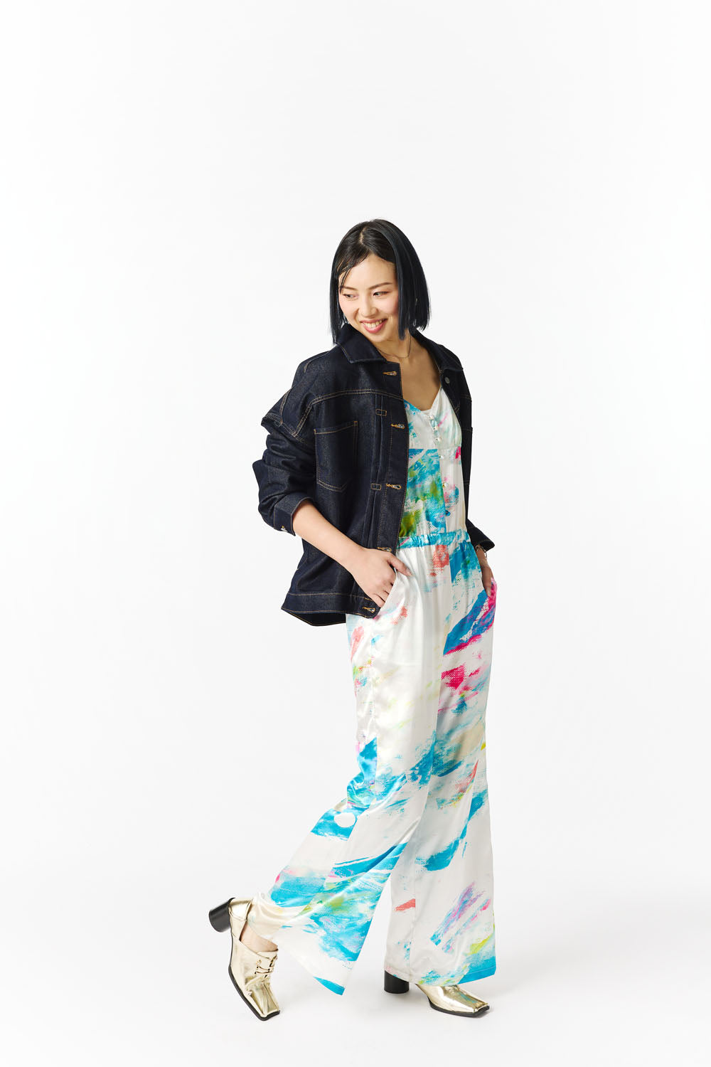 華やかなサロペットで日常にもパーティにも活躍する一枚です。