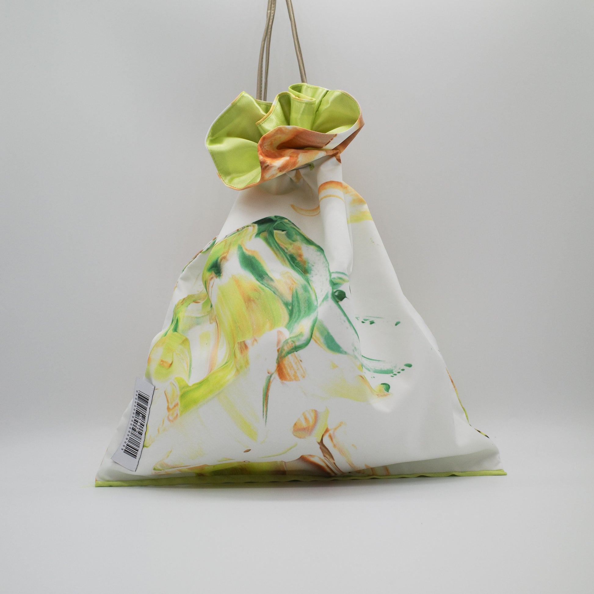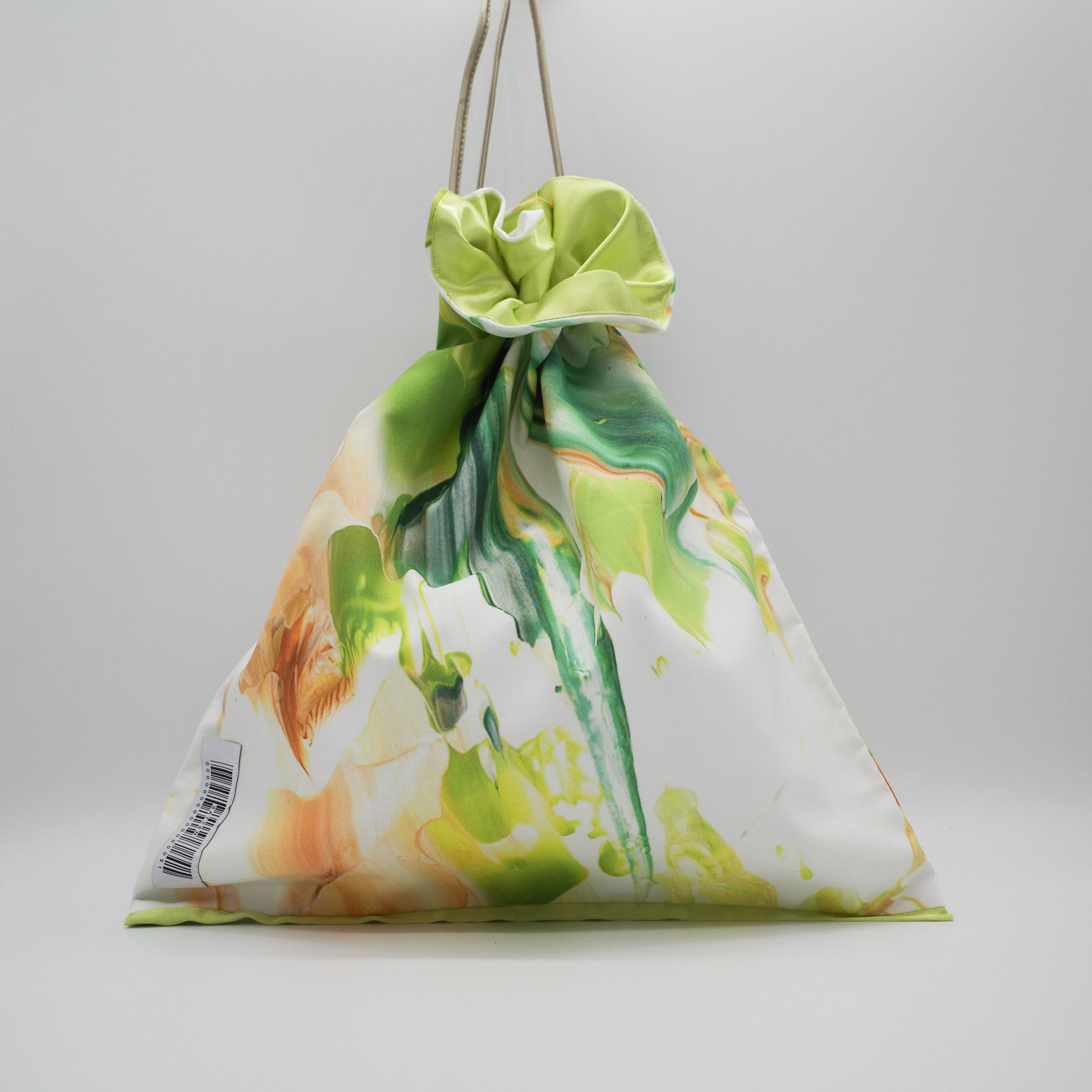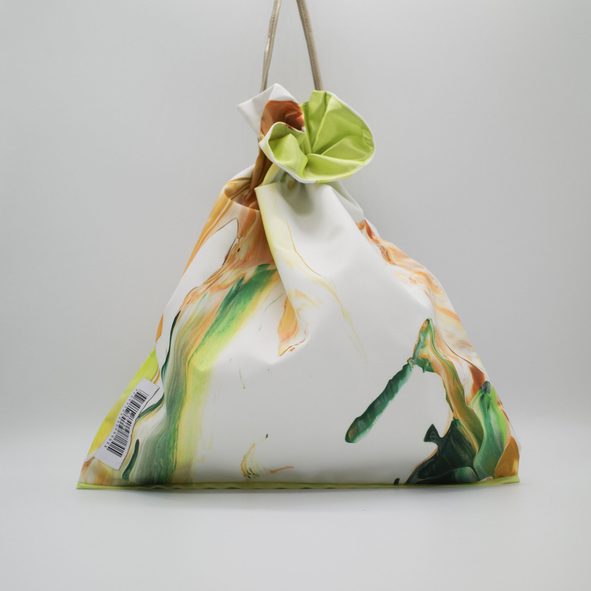 アートのかけら×カラフルな裏地・紐の組み合わせによって作られたSattenでしか手に入らないBag。1点ものの記しとなるシリアルナンバーが縫い付けられています。