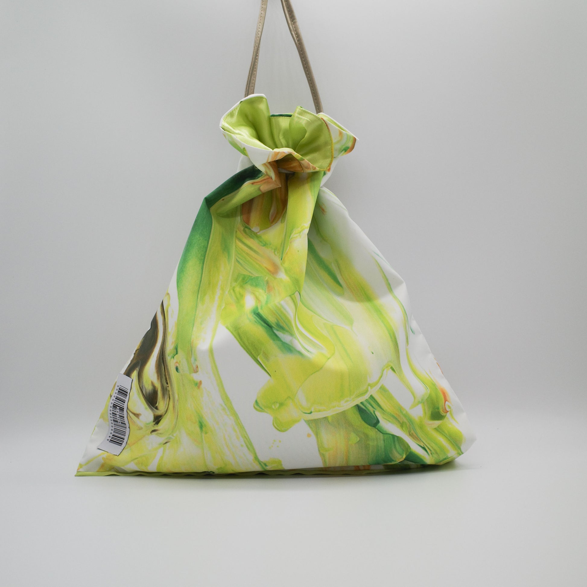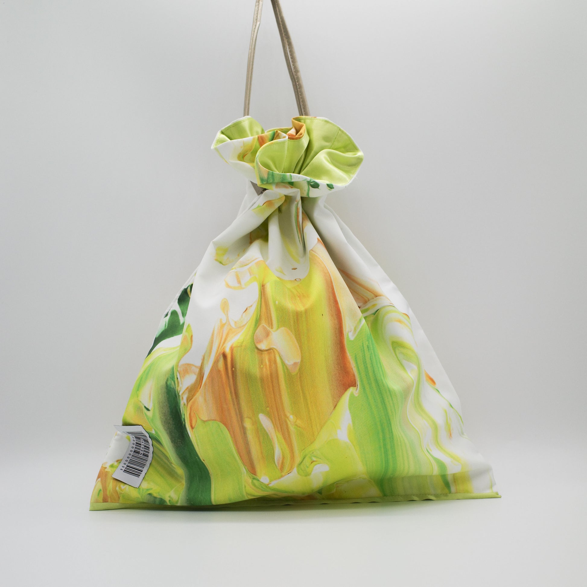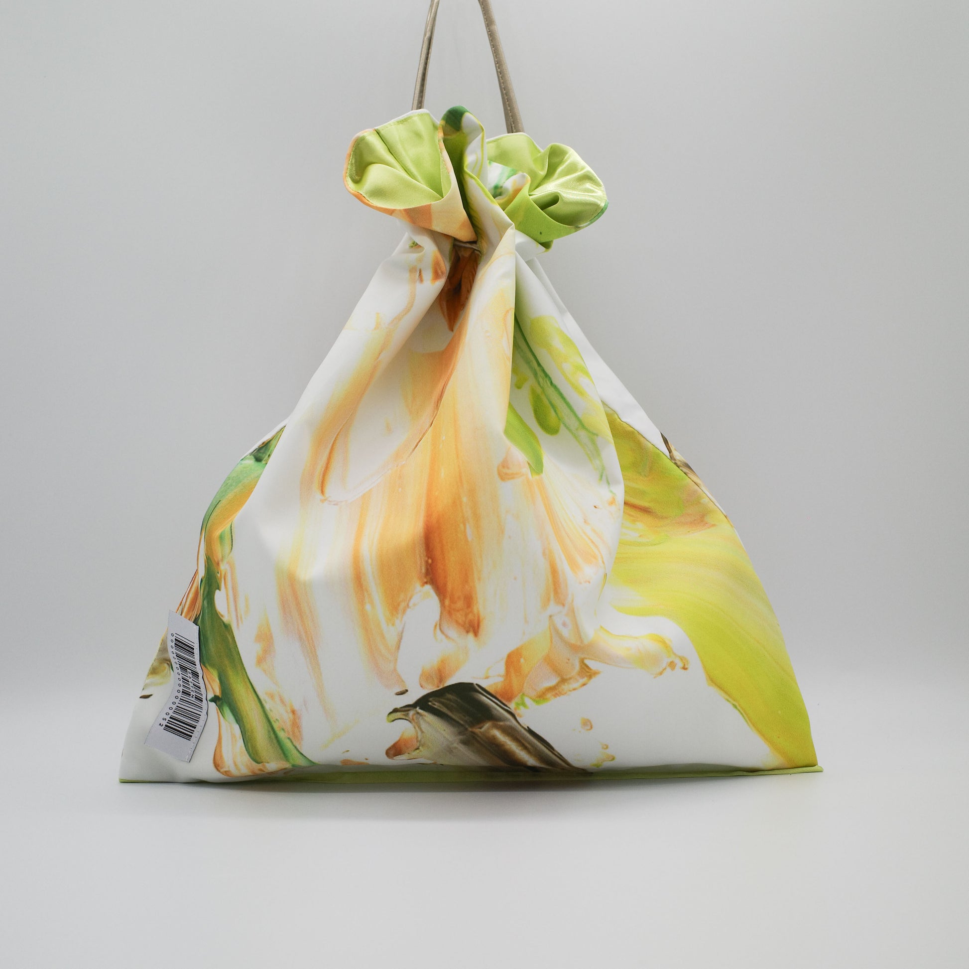 アートのかけら×カラフルな裏地・紐の組み合わせによって作られたSattenでしか手に入らないBag。1点ものの記しとなるシリアルナンバーが縫い付けられています。