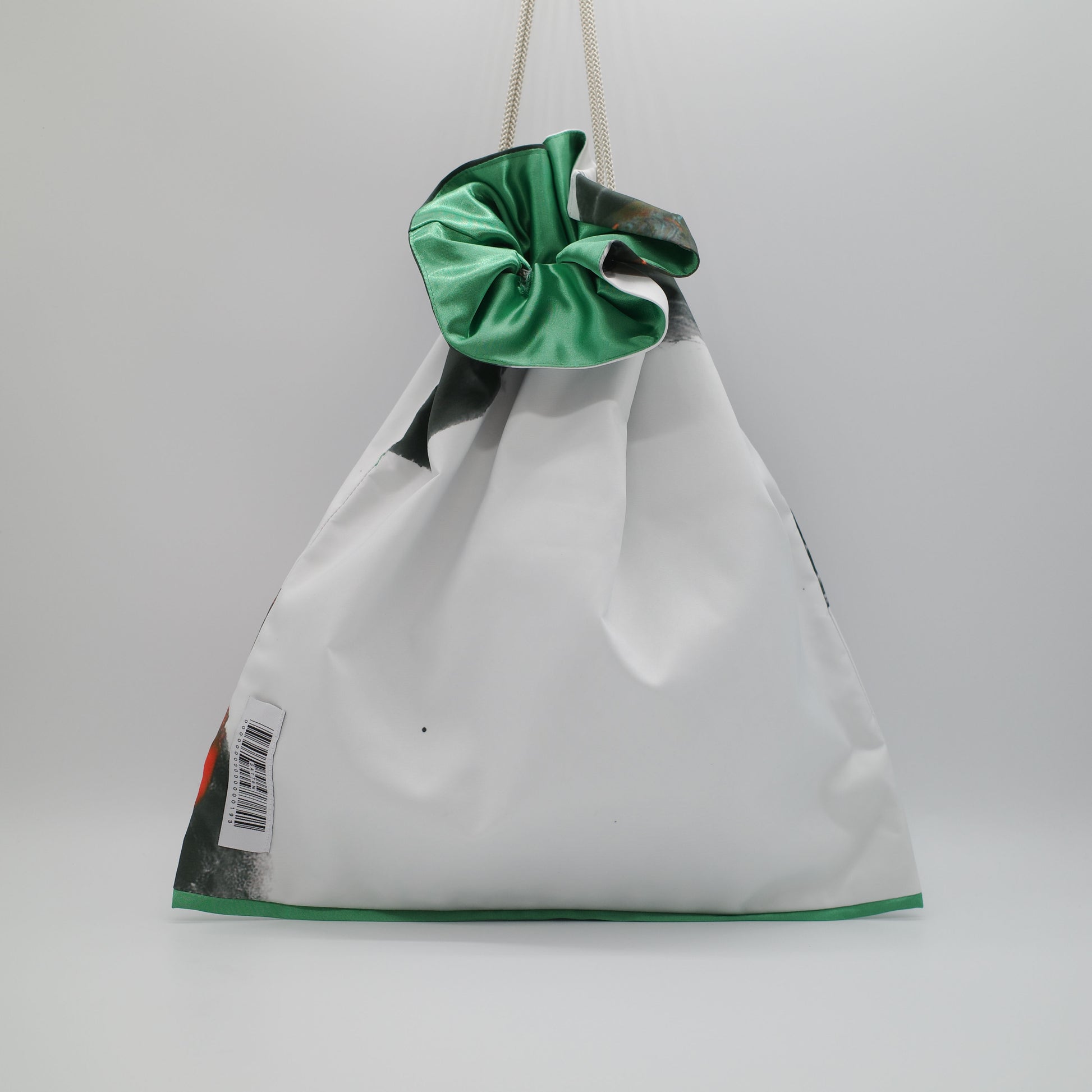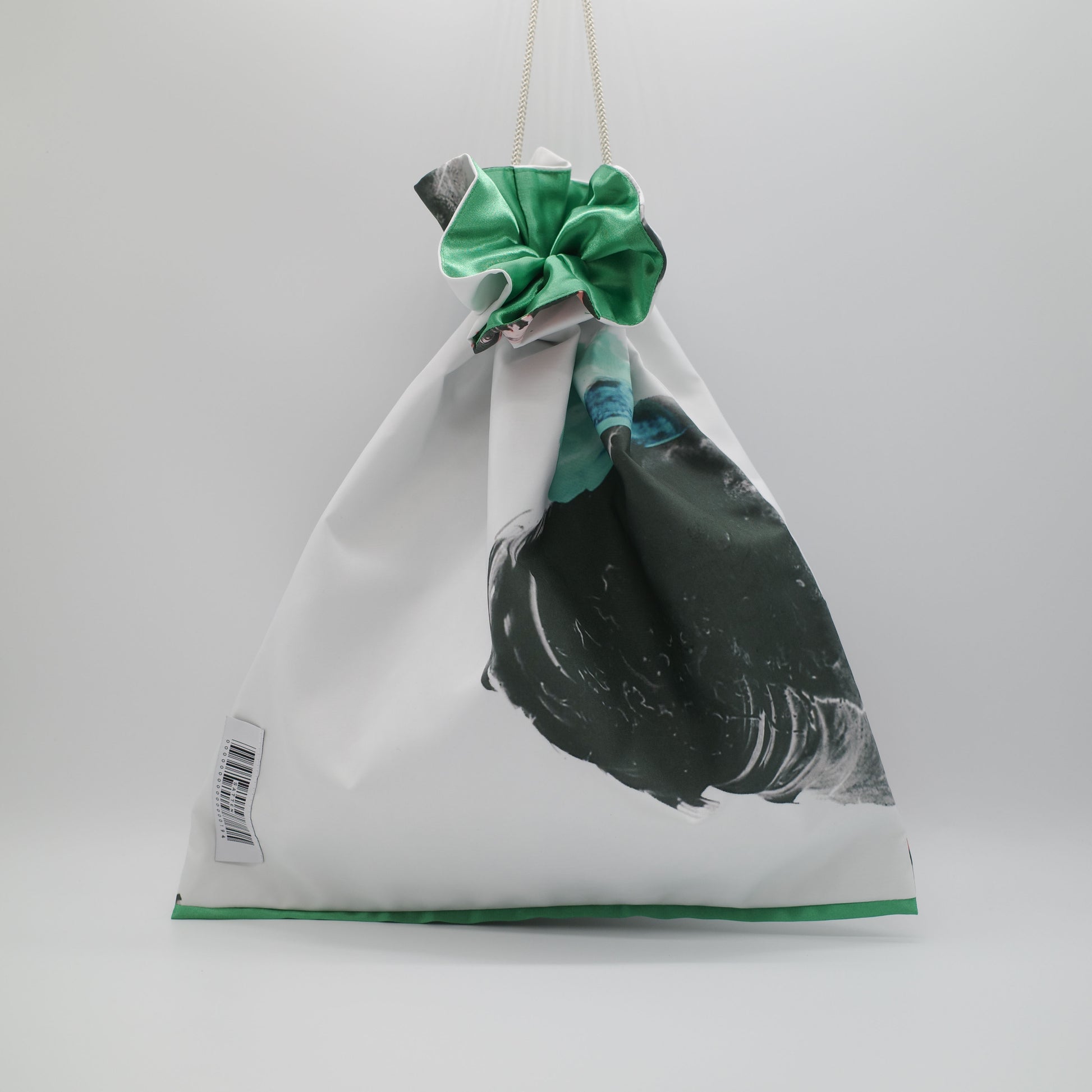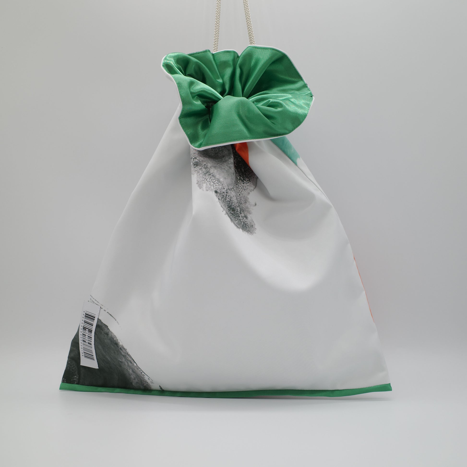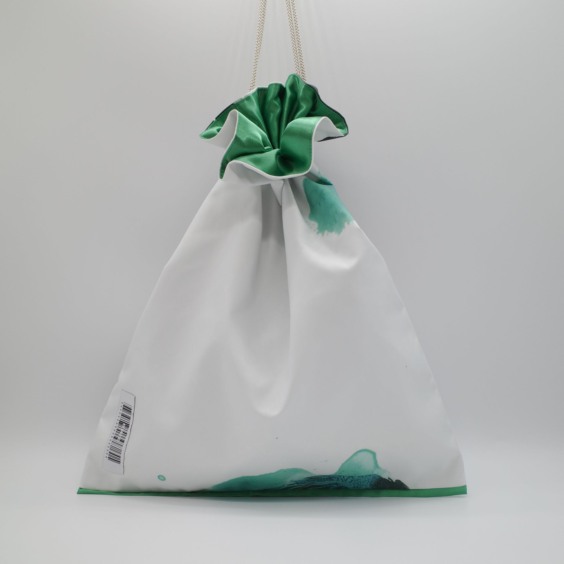 アートのかけら×カラフルな裏地・紐の組み合わせによって作られたSattenでしか手に入らないBag。1点ものの記しとなるシリアルナンバーが縫い付けられています。