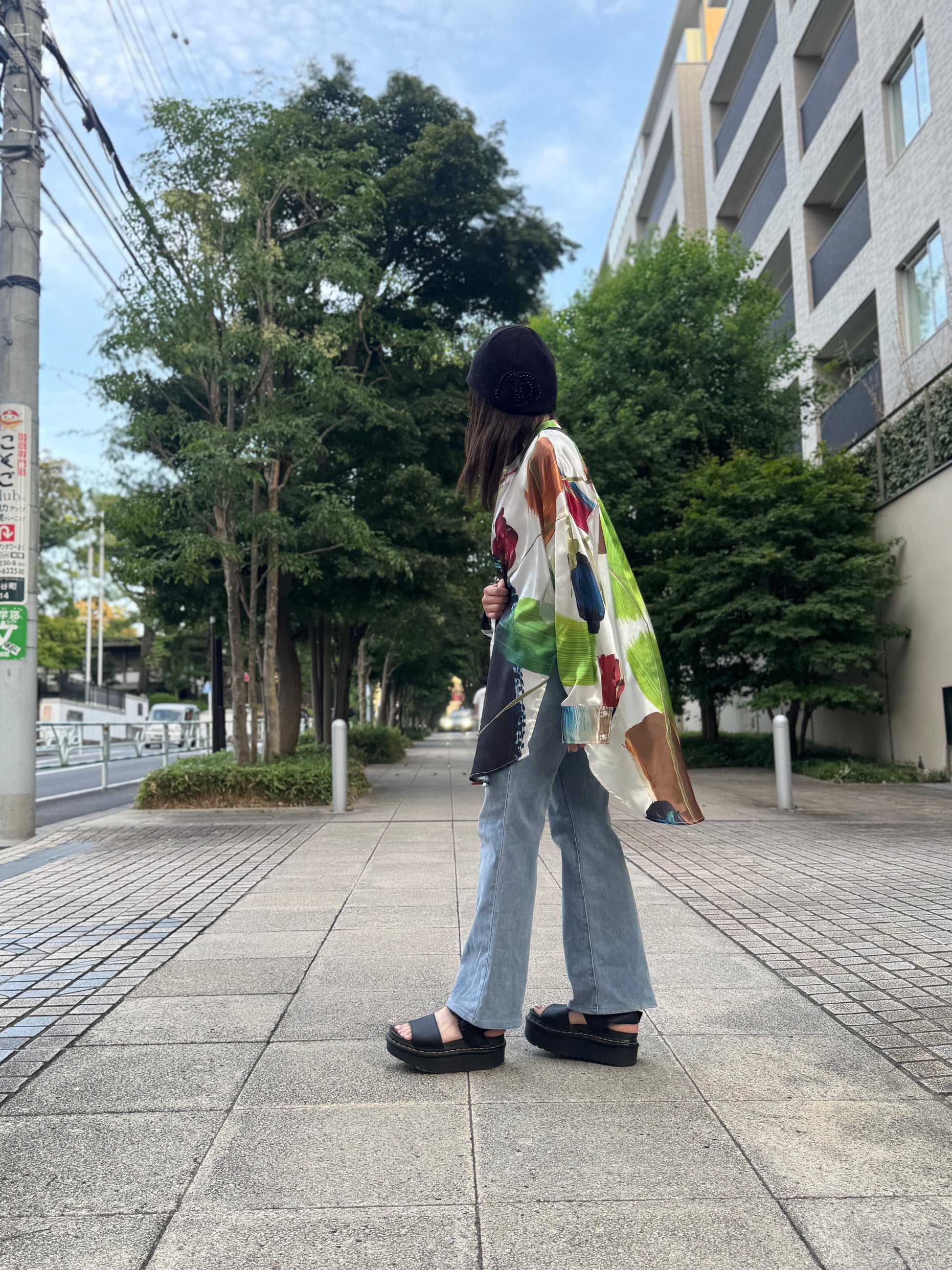 大きめのシルエットでスリットが大きく入っています。動きに合わせて裾が揺れ、オーバーサイズでも女性らしさも感じられるアイテムです。